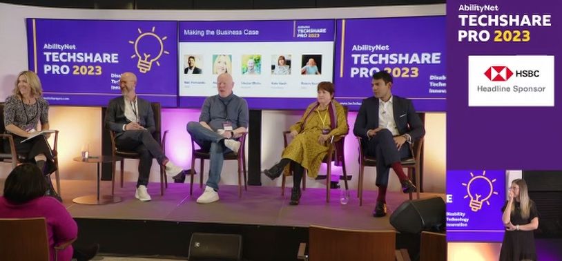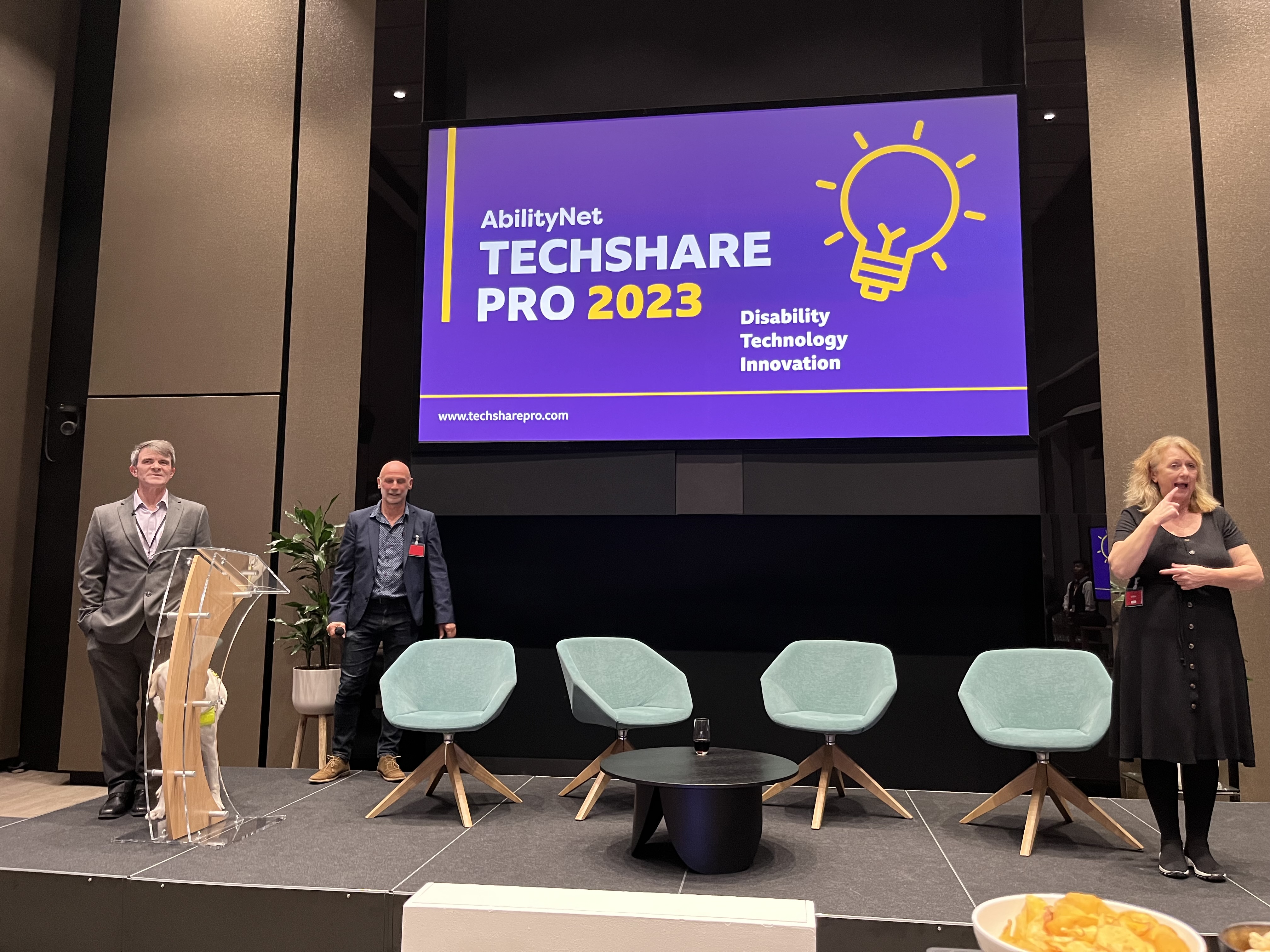 Sharing how the BSL interpreters from Involve Interpreter helped Deaf people attending the event, Tamsin said “BSL interpretation was included throughout the event and they made sure our speakers, in person and virtual audience members with hearing loss could successfully attend and engage with the event.”